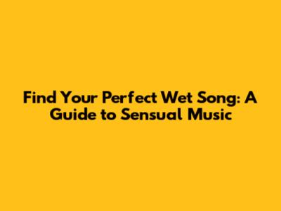 Find Your Perfect Wet Song: A Guide To Sensual Music