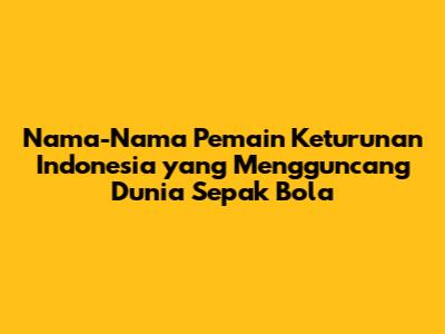 Hai, guys! Siapa sih yang nggak bangga kalau pemain sepak bola berdarah Indonesia bisa unjuk gigi di kancah internasional? Pemain keturunan Indonesia memang punya daya tarik tersendiri, ya nggak sih? Mereka membawa harapan baru bagi persepakbolaan tanah air. Nah, artikel ini bakal ngebahas tentang nama-nama pemain keturunan Indonesia yang berhasil mencuri perhatian di dunia sepak bola. Kita akan telusuri perjalanan karier mereka, klub-klub yang pernah mereka bela, dan tentu saja, kontribusi mereka untuk dunia sepak bola. Penasaran kan? Yuk, kita mulai!